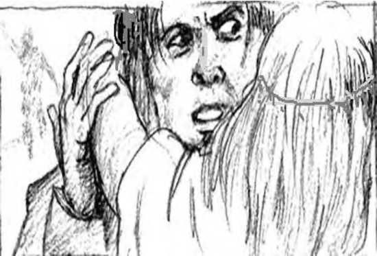 Но девушка только сильнее цеплялась за него. Она пристально глядела ему в глаза своими огромными голубыми глазами и затем, перешла на шёпот.