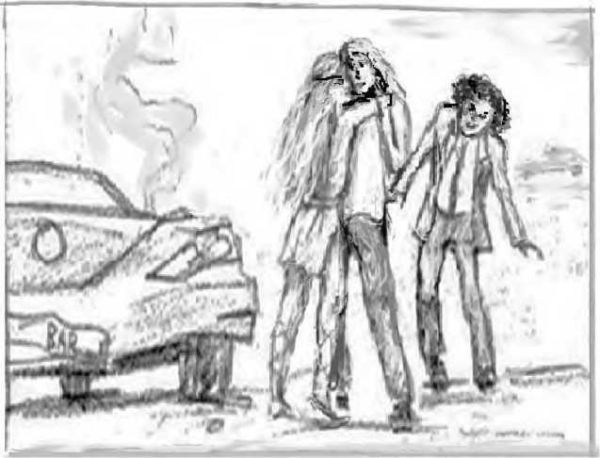 Внезапно, девушка пришла в себя. Она попыталась вырваться из чужих рук, уносящих её от любимого. Но слабость от полученных травм не позволяла ей это сделать.