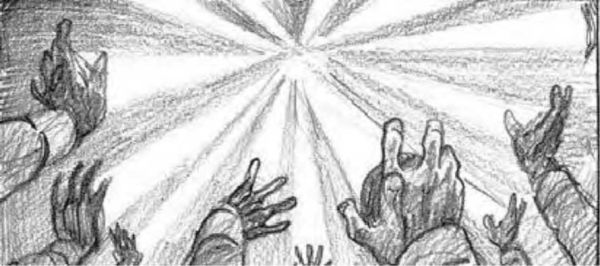– Друзья мои, наступил исторический момент! Все вместе, мы собрались здесь, в центре столицы. Вопреки запретам отжившего мира, свободная молодёжь начинает акцию спасения человечества! Джонни развёл в стороны руки, как бы обнимая своих единомышленников. – Итак… Всем!.. Повторяем за мной. Все зеркала направляем в небо! – Рокер поднял над собой зеркальце и, поймав солнечный луч, направил его в небо. – Эй, там, наверху – заорал он во всё горло – вы слышите меня? Джонни подставил ладонь к уху. – Я здесь, с-сволочи! – закричал «избранник». – Я гото-ов!