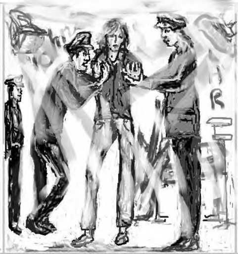 – Вы арестованы за богохульство и нарушение порядка! – выкрикнул второй полицейский, пытаясь заковать рокера в наручники.