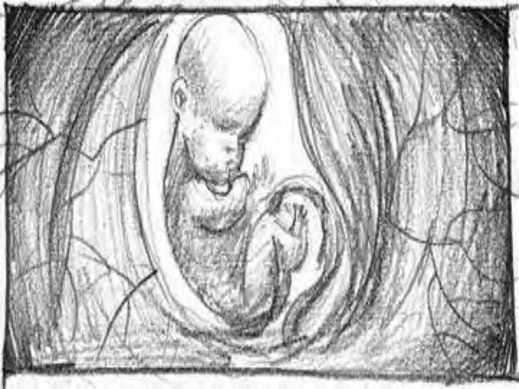 Головка младенца подалась вперед, натягивая до предела тонкую пленку. Пузырь прорвался, и ребенок, с потоком жидкости устремился вперед, по узкому тоннелю. Он плыл сквозь череду туманных сцен из его будущей жизни. Ребёнок двигался к узкой спасительной щели. Сквозь щель пробивался лучик солнечного света.