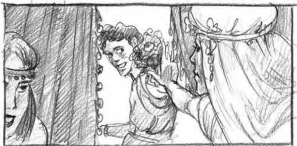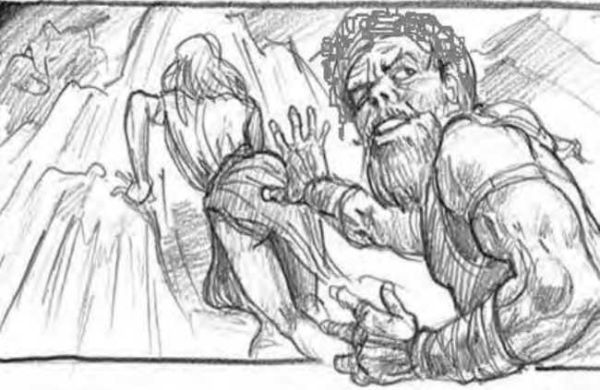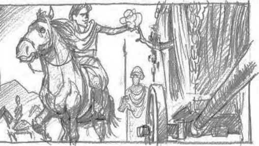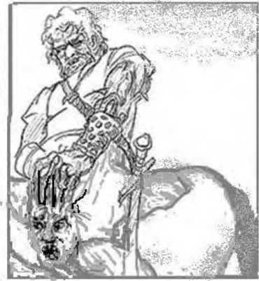 Мускулистый рыжебородый главарь, верхом на коне, догнал убегавшего человека в дорогом наряде. Он ухватил его за длинные волосы и оторвал от земли. Разбойник улыбался, оскалив жёлтые зубы, наслаждаясь мучениями своей жертвы.