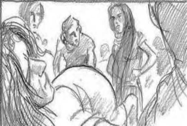 Из-за камня выглядывали наши пришельцы. Огневолосая, повернулась к Седобородому режиссёру, театрально утирая слезу.