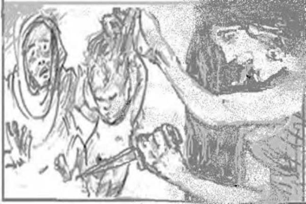 Увидев, что жених пришёл в себя, и поднимается, он прыгнул на несчастного. Сбив с ног, атаман прижал его к земле. Вырвал нож и приставил к горлу жертвы.