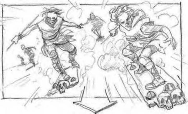 Плоские деревянные доски сверху были обтянутые кожей. А снизу, прикреплённые круглые колёсики с отверстиями, позволяли этим доскам с шуршанием пролетать над улицей, неся на себе лихих наездников. Со свистом и улюлюканьем наездники перемахнули через невысокую глиняную ограду и, приземлились на рынке среди толпы. Ловкие грязные руки выхватывали у зазевавшихся горожан кошельки, срывали серьги, бусы, золотые украшения. Они использовали этот проверенный «эффект неожиданности» уже не первый раз.