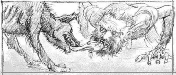 А вот голова у него была собачьей. Глаза у существа были закрыты. Но, странное дело: вдруг, этот монстр зашевелился и зевнул, оскалив клыкастую пасть.