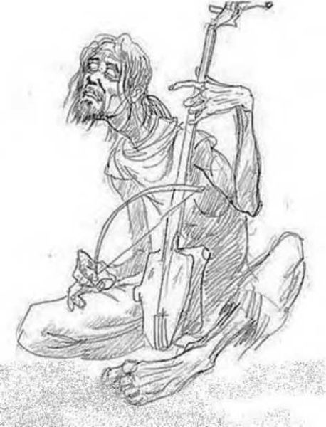 Рядом с ним, на другом конце валуна, сидел другой слепец. Этот слепой человек не принимал участие в пиршестве и дискуссиях. Пальцы его рук искусно перебирали девять струн старинного кинора. Жилистый оборванец протянул «музыканту» кость с остатками хрящей.