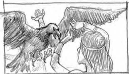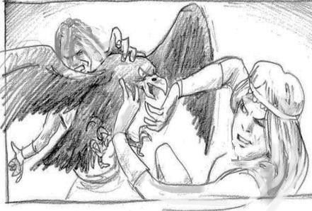 Услыхав за спиной шум больших крыльев, Александра резко обернулась. В ужасе, она взмахнула руками. Орлица стремительно атаковала, вытянув вперёд когтистые лапы. Александре, в последний момент, удалось увернуться.