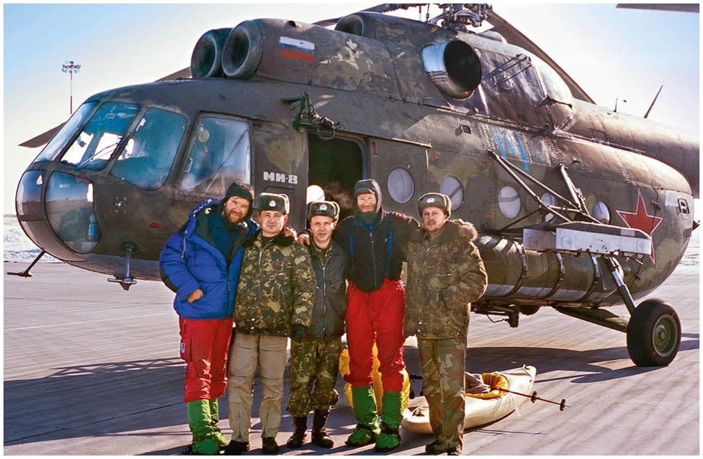Матвей Шпаро и Борис Смолин с экипажем вертолета Ми-8