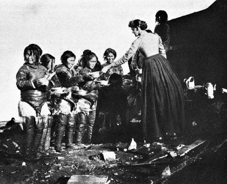 Восхищается инуитами и Фредерик Кук: «Интересно… найти в самом отдаленном полярном регионе маленькое племя, спрятанное рукой самой природы за огромными замерзшими морями и другими естественными препятствиями, живущее в состоянии счастья, покоя и мира, не зараженное пороками белокожих людей».