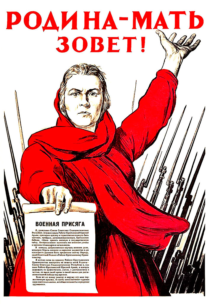 Практически не меняясь, штык к винтовке Мосина просуществовал полвека, пережив свой пик в революцию и Гражданскую войну. В Великой Отечественной войне он стал причиной смерти немалого числа гитлеровцев и символом народной освободительной войны против немецко-фашистских захватчиков, что отражено во множестве плакатов того времени (приведены плакаты Кукрыниксов и И. Тоидзе).