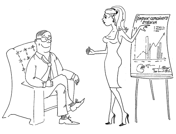 У вас есть право вместе отдыхать, путешествовать и требовать в отпуске внимания к себе и детям. Как я предлагаю вам обратить внимание мужа на совместный отдых? Понятно, что зачастую мужчина не видит смысла в длительных каникулах, особенно если он трудоголик или просто получает кайф от своей деятельности или процесса. Здесь лучше применять именно деловой подход для договоренности с ним. Берете ватман и рисуете на нем календарь (или приклеиваете соответствующую сетку), сажаете своего мужчину за круглый стол переговоров и действительно как учредитель с директором прописываете досконально ваш отдых на целый год, ваши выходные дни и специальные праздники. Дайте ему этот листок на подпись и далее только заранее напоминайте, что его ждет в ближайшую неделю. Как правило, после подписи уже далеко не уйдешь. Мужчина понимает язык действия, помните об этом.