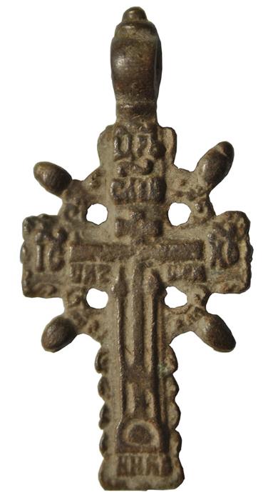 Одним из таких неожиданных выводов стало наблюдение, что на старых нательных крестах (датируемых временем до Смуты начала XVII века) отсутствует фигура Христа. Удивительно, но факт. На подобных крестах – а просматривая большое количество материала, можно научиться безошибочно определять, по исполнению и внешнему виду (говоря современным языком, дизайну), к какому времени относится тот или иной предмет, – так вот на старых крестах нет фигуры Спасителя. Поначалу меня это тоже озадачило. Но затем возник другой факт. На ряде крестов фигура Христа (или не Христа, поскольку изображения часто весьма далеки от канонического облика Спасителя) она все же есть. Одним словом, на определенном количестве крестов присутствует некое человеческое изображение. Но это кресты совершенно особые. Они «двойные», с полостью внутри, и способны открываться. Предназначены они для того, чтобы внутрь можно было положить частицу «святых мощей», какой-то небольшой предмет или его кусочек, принадлежавший некоему праведнику или что-то подобное. Именно поэтому их называют «мощевиками», или «энколпионами» (греч.). Используются они как обереги, например, путниками, отправляющимися в дорогу. После внимательного анализа я пришел к выводу, что подавляющее большинство старых энколпионов имеют западноевропейское происхождение, или являются репликами западных образцов. Об этом мы поговорим ниже, а пока лишь отметим, что использование креста в качестве оберега было делом вполне обычным.