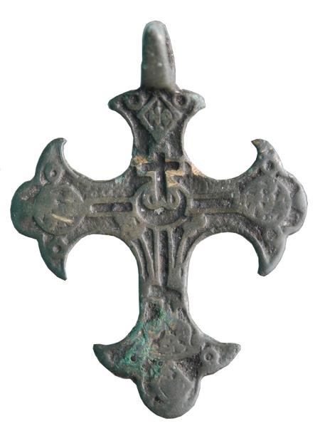 Часто на православных крестах присутствуют и другие элементы, вызывающие недоумение и разночтения. Как видно на рис. 3, центральная часть креста «лежит» на некоем круге, который в среде археологов обычно именуется «штурвалом». Верхняя и горизонтальные оконечности креста могут представлять собой разветвленные утолщения, походящие на распускающийся цветок или почку (Рис. 4).