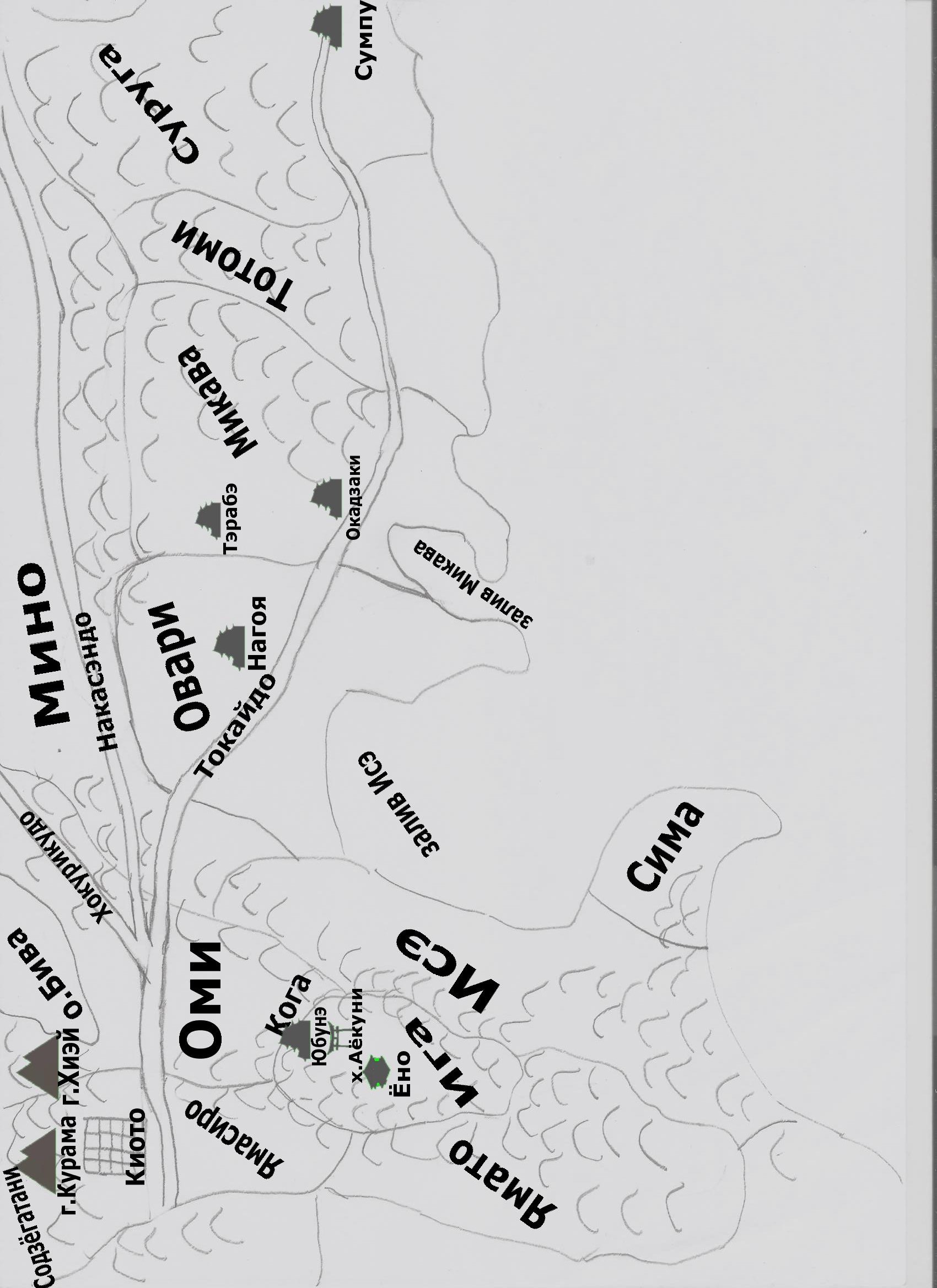 Вскоре он добрался до озера Бива. Огромного, единственного во всей Хиномото не имеющего себе равных в размерах. Дожди прекратились, и непогода сменилась нестерпимой духотой и палящим солнцем. Зато Бива блистало в лучах небесного светила, словно хорошо отполированное зеркало. А за ним, будто божественные обители виднелись; священная гора Хиэй со своими многочисленными храмами и великая столица Киото – дом Императоров и сёгунов Асикага. Однако, не то, не другое не являлось целью Куро.