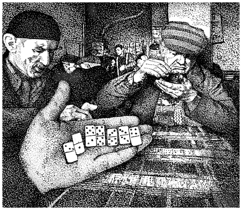 – Пойду, – Роман, нахохлившись, но скрывая недовольства моей позицией, пошел к кипятильнику на край комнаты, огибая сидящих за дубком[23], громко и однообразно хлопающих по столу игроков в домино.