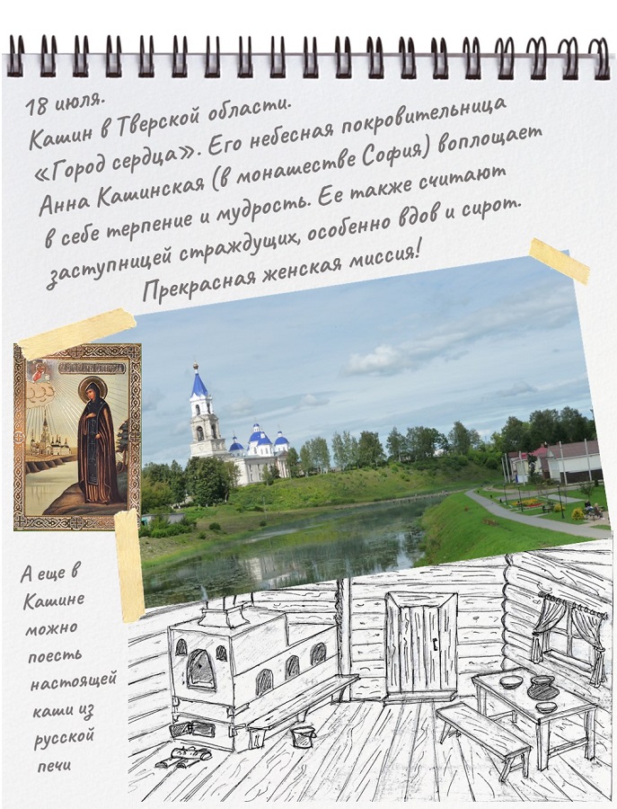 Кашин называют «городом сердца». Именно форму сердца описывает река Кашинка, протекая через него. Это весьма символично. Для меня сердцем Кашина стали хранящиеся здесь мощи святой благоверной княгини Анны Кашинской и память о святых князьях из Тверского дома. Княгиня Анны – образ русской женщины, не сломленной выпавшими на ее долю многочисленными испытаниями. Она потеряла мужа, двух сыновей и внука, совершивших подвиг исповедничества и замученных в Орде в первой половине XIV века. Потери не сломили ее дух, а способствовали укреплению в вере и благочестии.