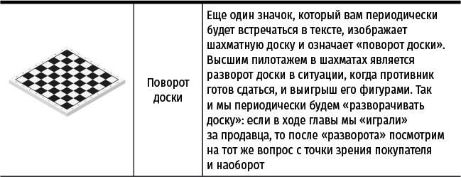 Поработав с этой книгой (именно поработав, а не просто прочитав), вы освоите пошаговые алгоритмы ведения торга и устраните ошибки, из-за которых теряли деньги в предыдущих сделках. Как хороший шахматист, знающий стандартные варианты развития шахматных партий, вы на несколько шагов вперед будете предвидеть ходы оппонента и знать лучшие способы противодействия им. Причем мы часто будем «разворачивать доску»: сыграв за продавца, проанализируем ту же ситуацию с точки зрения того, что мог в ней сделать покупатель, и наоборот.