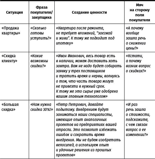 «Пятерку» получают те из вас, кто сначала повысил ценность, а потом «перевел мяч» на сторону поля покупателя.