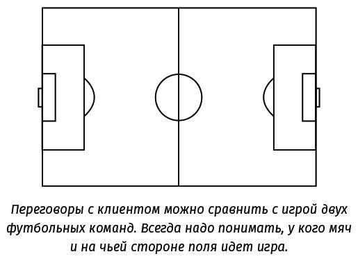 Продавец: Иван Иванович, давайте резюмирую: бригада свободна, можем начать ремонт хоть завтра, качество работ вы видели на других объектах (вратарь отбил удар, контратака, мяч в центре поля). Кстати, а почему вообще речь зашла о скидке? (Мяч на стороне поля покупателя, удар по воротам.)