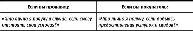 Совет. Мыслите не просто «100 000 рублей», а «половиной квадратного метра моей будущей квартиры», «путевкой в Турцию» или «колесами моего нового внедорожника». Когда вы четко представляете материальный «приз», который получите или сохраните, если успешно проведете предстоящие переговоры, настрой резко меняется – ведь это уже не абстрактные циферки на вашем банковском счете, а ваша мечта. Сделать необоснованную уступку при таком взгляде на ситуацию – все равно что самому отдать оппоненту уже принадлежащий вам «приз»!