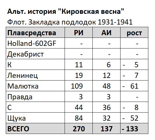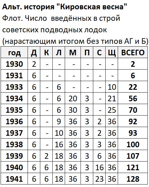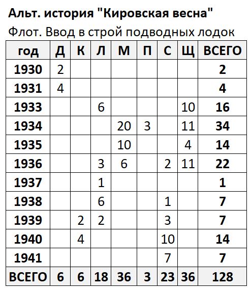 В альтернативной реальности «Кировская весна» с 1930 по 1941 год введено в строй 128 подводных лодок: