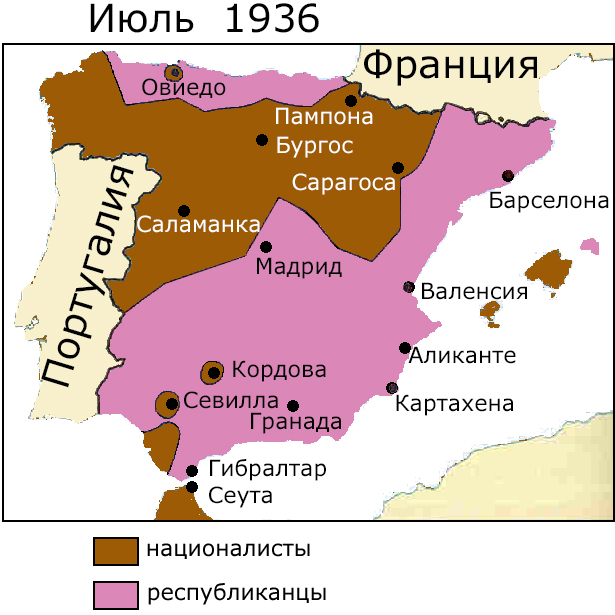 «Вечером 17 июля 1936 года в республике Испания вспыхнул военный фашистский мятеж против законно избранного правительства Испании, сформированного блоком победивших на всенародных выборах левых партий под обобщенным наименованием «Народный Фронт».