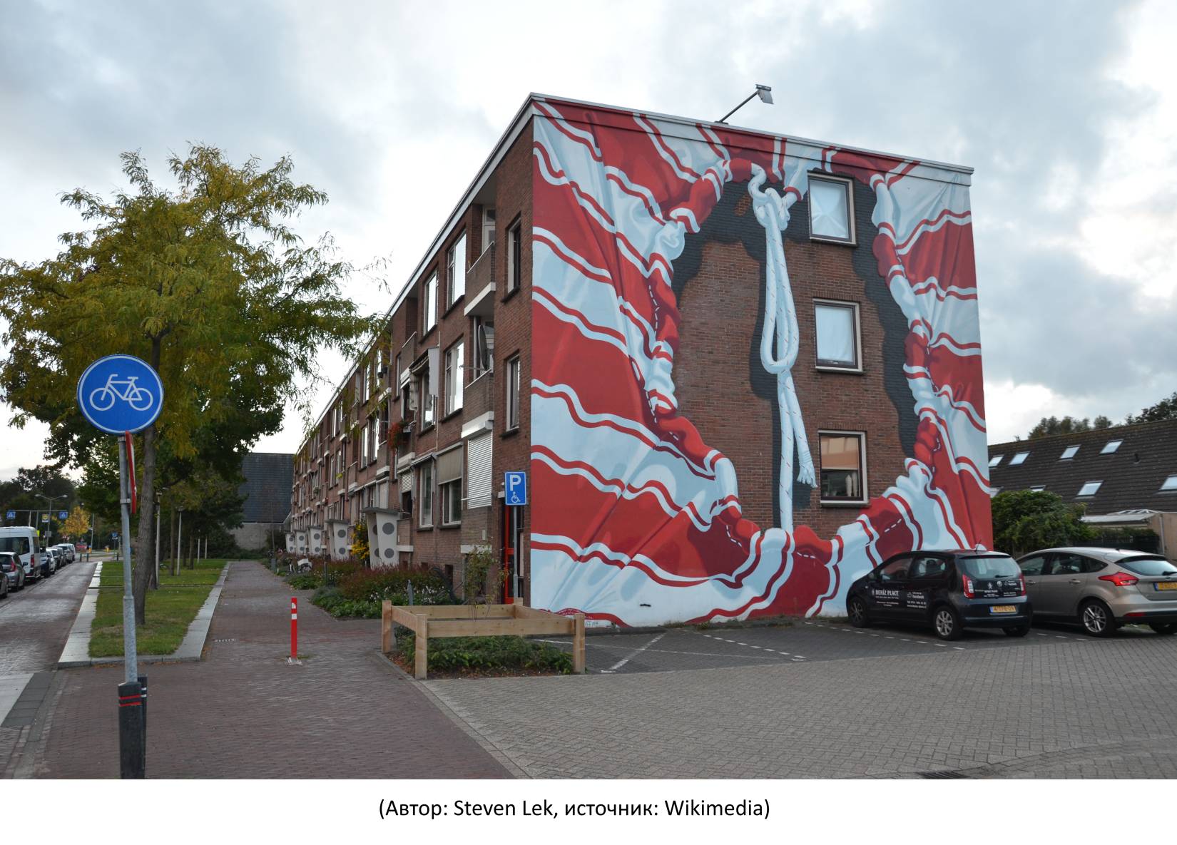 (Более наглядно изменение восприятия объема в рисунке на асфальте и разрушение этой иллюзии при взгляде с другой точки можно увидеть на иллюстрациях к статье на сайте https://bogdan-63.livejournal.com/4459217.html.)