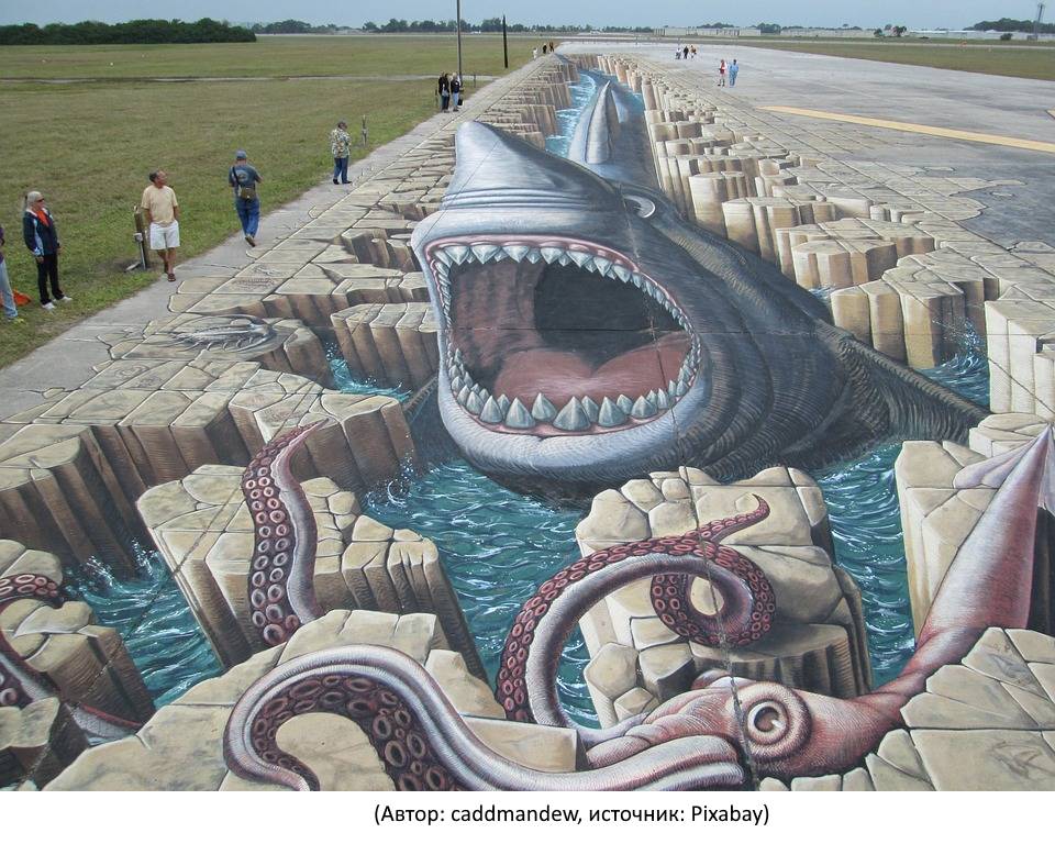 Приведем несколько впечатляющих примеров уличного (и не только уличного!) 3D-арта, найденные на просторах Интернета.