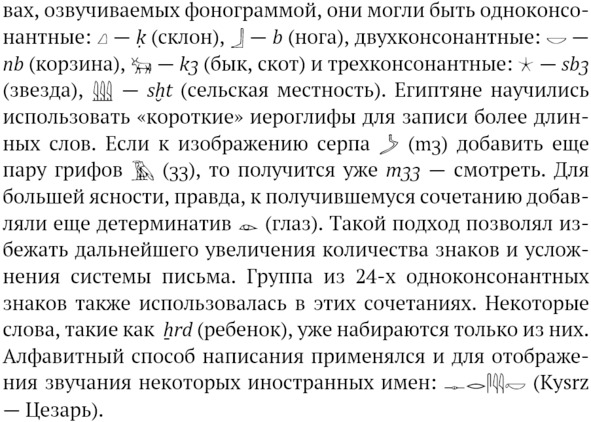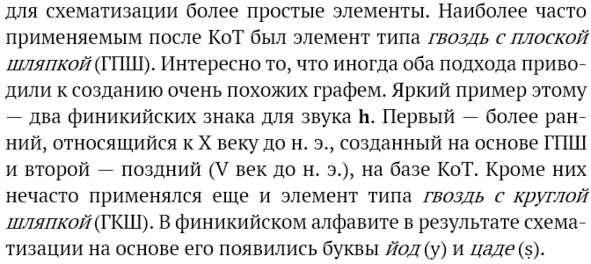 Немного об остроте проблемы. Когда работы великих лингвистов XIX―XX столетий И. А. Бодуэн де Куртене, Л. В. Щербы, Ф. де Сосюра, Н. С. Трубецкого и других привели к пониманию того факта, что мельчайшей составляющей языка человека является фонема (звук), отчего речь любого народа можно очень точно передать при помощи довольно ограниченного числа знаков (обычно не более сорока), практическое воплощение всего этого – буквенно-звуковое письмо2 (часто употребляется не совсем корректный термин «алфавитное») использовалось на нашей планете уже около трех тысячелетий! И, вне всякого сомнения, его существование сильно поспособствовало этому открытию. Так, какими же знаниями в области лингвистики, какой чудовищной прозорливостью или интуицией должен был обладать тот безвестный гений, что практически с нуля, на голом месте изобрел первый еще очень несовершенный алфавит? Всего величия этого прорыва мы сейчас уже не можем по достоинству оценить. Нам это кажется вполне естественным, нас этому учили с детства. Однако вспомните, в школе мы обучались чтению сначала по слогам: «Ма-ма мы-ла ра-му». Ведь именно так – слогами мы слышим и воспринимаем звуки речи изначально. Оттого теоретические построения о буквенно-звуковом письме, как продукте закономерного развития письменности, заложенные в наши школьные учебники истории, вызывают у большинства ученых, специалистов по палеографии3 изрядную долю скепсиса. Эта схема развития письма: синтетическое (рисуночное) → логографическое → слоговое → звуковое, неизбежно должна была бы забуксовать на его предпоследнем этапе. Придумав слоговое письмо, человек получал в свое распоряжение удобную, инстинктивно понятную и легкую в запоминании (около ста знаков!) систему, отчего пропадал всякий стимул для дальнейшего ее совершенствования. Перешагнуть этот рубеж под силу лишь величайшему из гениев. Тут в пору говорить уже о божественном откровении! Однако таланты подобного масштаба, сумевшие настолько далеко опередить свое время, рождаются крайне редко. И вероятность того, что именно такое прозрение стало причиной изобретения звукового письма уже во II тысячелетии до н. э., ничтожно мала.