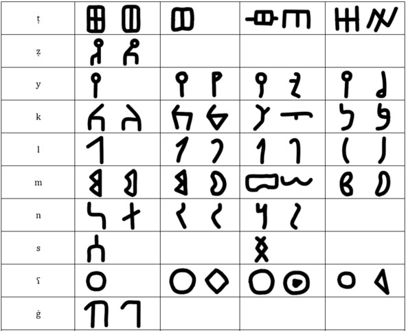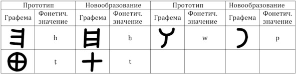 Таблица 7. Графемы вторичного образования в финикийском алфавите.