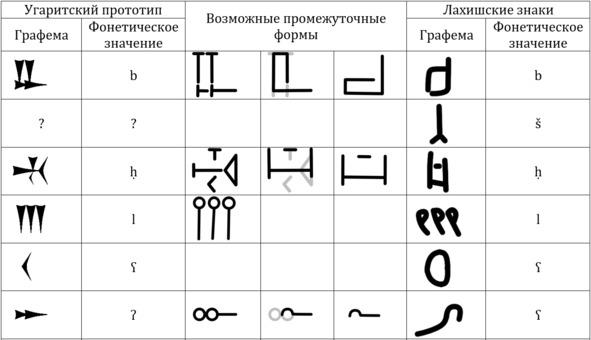 Таблица 12. Происхождение формы лахишских знаков (письмо Лахиш А).