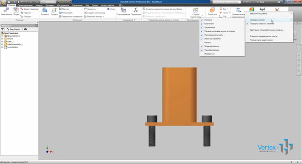 Откроем файл сборки. После открытия файла становятся доступными функции ленты для данного типа файлов. Они отличаются для деталей сборок и чертежей.