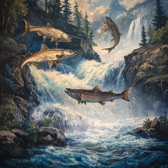 Рыба эта откладывает икру только в самой чистой воде в горных реках, доплывает против течения до самых истоков, под самые вершины поднимается, пороги перепрыгивает, гребёт без устали, преодолевает сильнейшее течение… А коль остановится лосось хоть на полминуты, отнесёт его до самого моря! Нельзя останавливаться! Поэтому нарекаю вас Лососями! Вы теперь меж собою как братья, а мне как сыны! Учитесь и возвращайтесь, построим сказочное царство, будут потом со всех губерний ребятишек слать к нам учиться!"