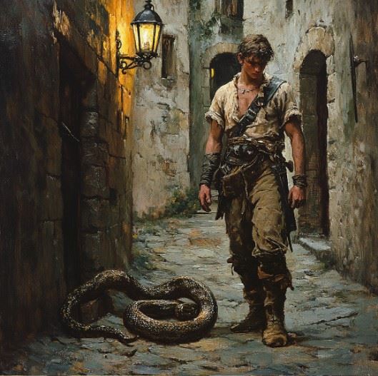 А змеюка ему и говорит человечьим голосом, слегка пришепетывая: «Дозволю, только вот, ответь на мои вопросы и ступай. А коли неправильно ответишь, прости, ужалю в самую витальную зону». (*2)