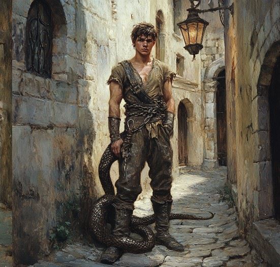 Чтобы рассмотреть лик кандидатки в невесты, богатырь запалил осветительную лучину и окаменел. Вовсе не невеста, а Тмутараканская змеюка, правнучка Горыныча, охватила его ногу кольцами, пощелкивая чешуйками и елозя раздвоенным язычком между больших и острых клыков, смотрела из темноты прямо в богатырские васильковые глаза.