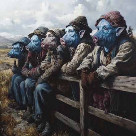 Разошлись, работают, терпят, побаиваются, что опять в убыток месяц пройдёт! Собрались через месяц, управляющий говорит: «Ну что сказать, чужие сторожа вашим воришкам воровать не дали, сами всё украли! Свинки от огорчения и недокорма перестают быть синими, теряем брендовую стоимость! Вот вам моё заявление по собственному желанию, я с таким коллективом работать не согласен!»
