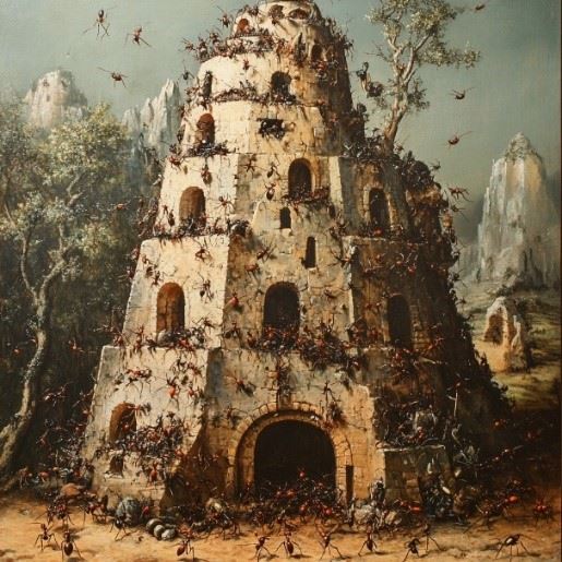 Стали думать, кого пригласить на следующий бочонок, собрали знатоков, признанных из разных областей – зря вино истратили. Все идеи ординарные. Уже расходиться хотели, и тут один парнишка из обслуги говорит: «Дядьки-мастера, попробуйте изобразить муравейник, и по телу муравьишек в азных жизненных ситуациях. Муравьи – существа трудолюбивые, коллективные, очень организованные. Для сюжетов материала прямо куча мала. Получается, рисовать можно каждому из вас без повторов, и тема фирменная объединяет».