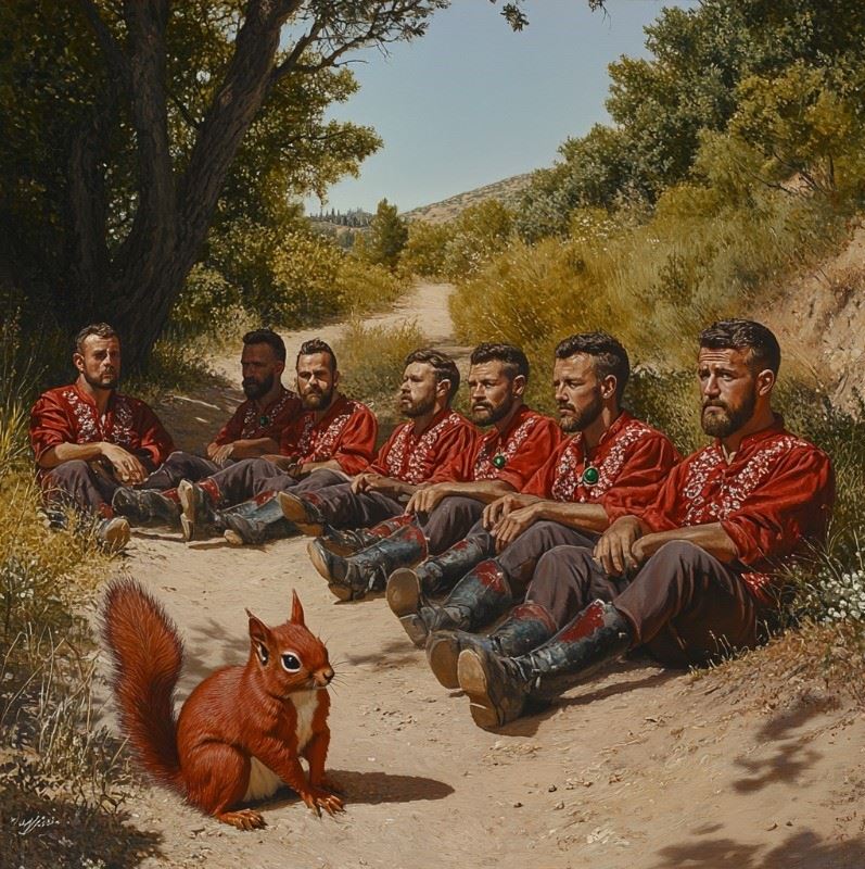 Вот как-то с утра построились они все вместе в тридцатичетвером пред окошками в царские палаты. Царь-батюшка милостиво поприветствовал, а потом и говорит: «К нам через пару дней, в среду, едут близлежащих царств руководители и команды в лапту соревноваться! Ну, в лапту вы их обыграете, тут у меня сомнений нет. Научитесь за часок, смекнете, как оно, и вперед. А вот чем поразить, удивить? Вот это крупный политический вопрос! В общем, мое разведподразделение донесло, что все наши соседи просят у своих дедов Морозов и Золотых рыбок, чтобы в их стольных городах появилась ель (некоторые даже голубую ель заказывают). И чтобы на ветке был выстроен домик в голландском стиле. И жила в этом домике белка, и не простая, а в шубке из ценного меха! И чтоб орешки – скорлупки золотые, ядра чистый изумруд… История не новая, конечно, но ни у кого нету! А у нас будет! К среде! Вы ж богатыри! Чешуей гореть, и дурак сможет! В общем, вечером выступаете».