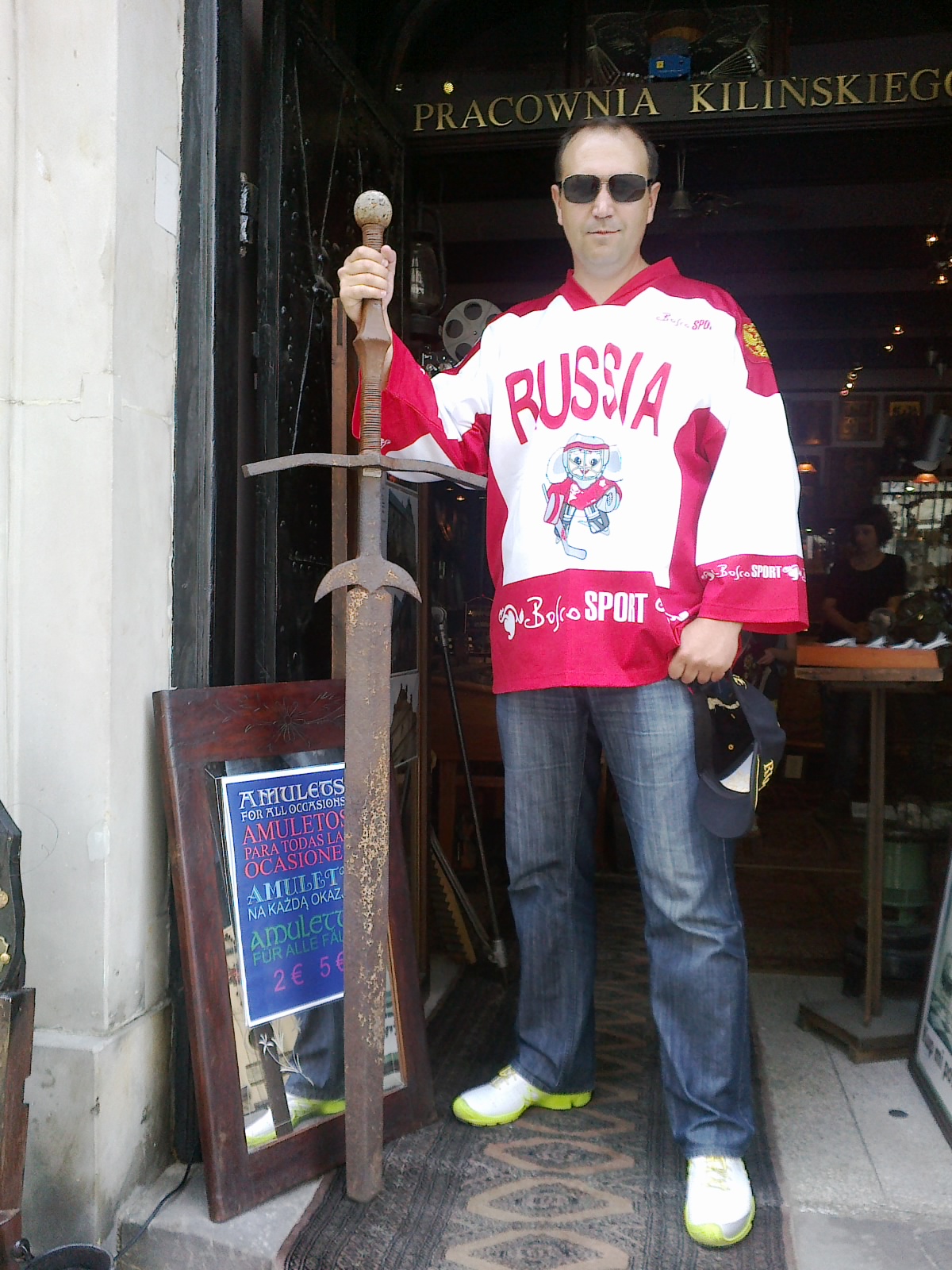 У меня самого была выдержанная в нужной тональности бело-красный хоккейный свитер, не выбивающийся из общей цветовой гаммы польской толпы, а вот он выглядел вызывающе. Это оценил не только я, тут же снявший с себя свитер и напяливший его на своего товарища поверх его одежды, но и окружающие, плотно нас обступившие при первых звуках взрывов. Граждане Польши закрыли нас своими фигурами на время переодевания и даже презентовали свой шарф со словами: «Будешь теперь Польска!» Виктор приобрел надлежащий вид, я остался в обычной белой майке и мы растворились в бело-красной массе.