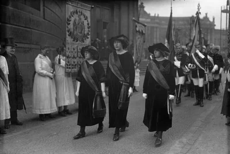 Женские студенческие корпорации (нем. Damenverbindungen) возникли в начале XX века. Они переняли у мужских организаций свод правил – Комман, но адаптировали ритуалы под себя. В женских корпорациях также есть свои неактивные члены-выпускники, только называют их, конечно не Alter Herr, а Alte Dame или Hohe Dame. По мере роста числа студенток росло и количество женских корпораций. В целом в веймарский период в женских корпорациях состояло от 6 процентов (в Берлине) до 15–20 процентов (в целом по стране) всех студенток. Такие корпорации были в Германии, Австрии, Швейцарии, Латвии и Эстонии. К 1933 году существовало уже около 100 женских корпораций, которые по примеру мужских тоже начали объединяться в зонтичные организации[37].
