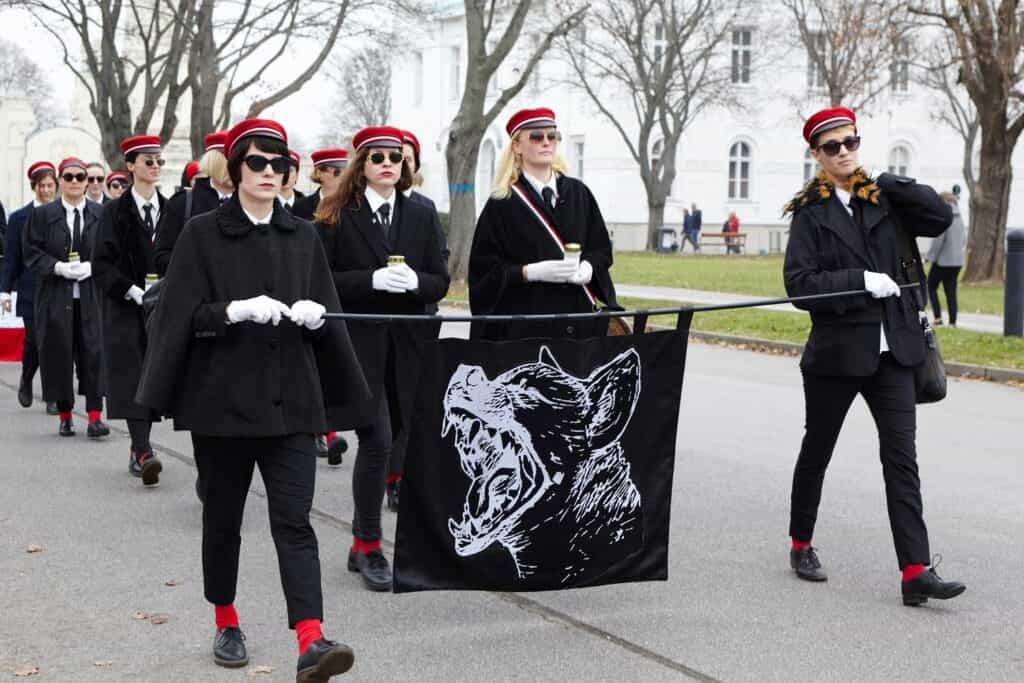 Созданное в январе 2016 года в Вене, это объединение решило объявить своими врагами консервативные буршеншафты и применять их традиции в войне против них самих. Они используют элементы атрибутики и традиций буршеншафтов, например, головные уборы и ленты, но стараются при этом высмеивать их. Так, на их флагах изображена кричащая гиена, они поют песни про «стальные влагалища», а их главная книга – Mein Mampf. Они публично выступают за матриархальное общество без права голоса для мужчин и квотой в 80% женщин и трансгендеров среди госслужащих[38].