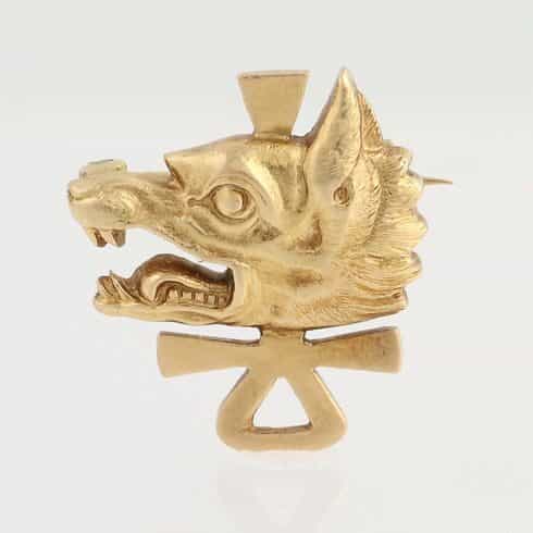 Золотой значок «Волчьей головы» от Tiffany & Co. Wilson Brothers Jewelry.