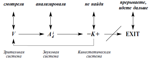 Для нас достаточно будет заметить первые одно-два движения, так как последний этап всегда является сигналом кинестетической системы (К).