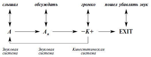 Иными словами, человек услышал музыку (первый этап стратегии), про себя проговорил (второй этап стратегии), что она слишком громкая (третий этап стратегии), и пошел убавлять звук (EXIT).