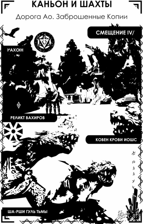 Тени пронеслись по внутреннему двору, минуя засыпанное тонкое ущелье у края каньона и оставляя за собой, непривычно заметно-пыльные следы. Затем на мгновение, они замерли перед самой шахтой, общаясь и разбрасываясь свистящими и шипящими звуками, попутно осматривая алыми глазами опустевший двор, а потом три из них, так же быстро исчезли в глубине лабиринта.