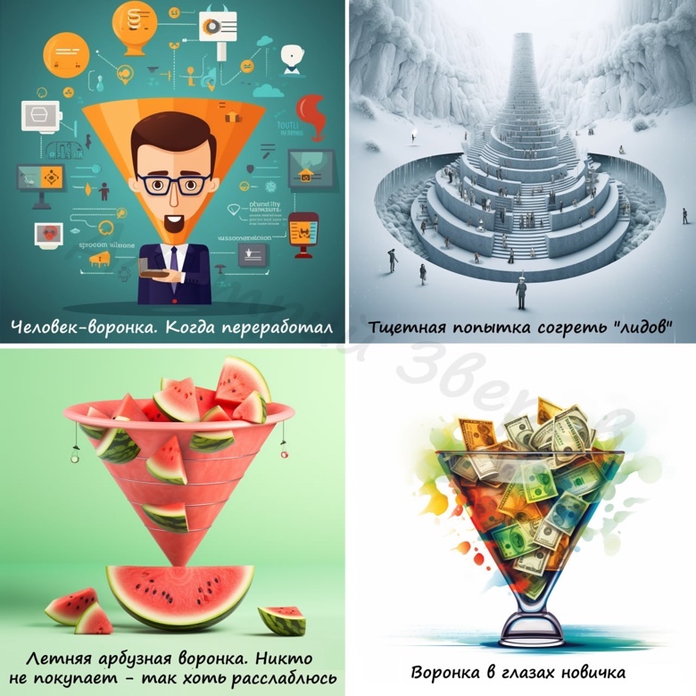 Сверху представлена подборка из 4 метафорических, но вполне реальных воронок, которые могут встретиться в жизни каждого эксперта: