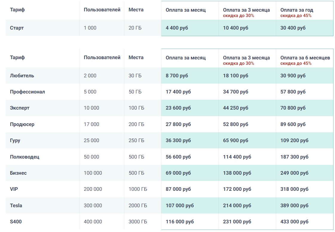 Здесь стоимость пользования сервисом зависит от того, какое количество пользователей есть у вас в аккаунте: