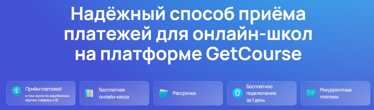 У сервиса есть собственная платежная система – модуль Гетпей. С его помощью можно очень просто настроить прием платежей.
