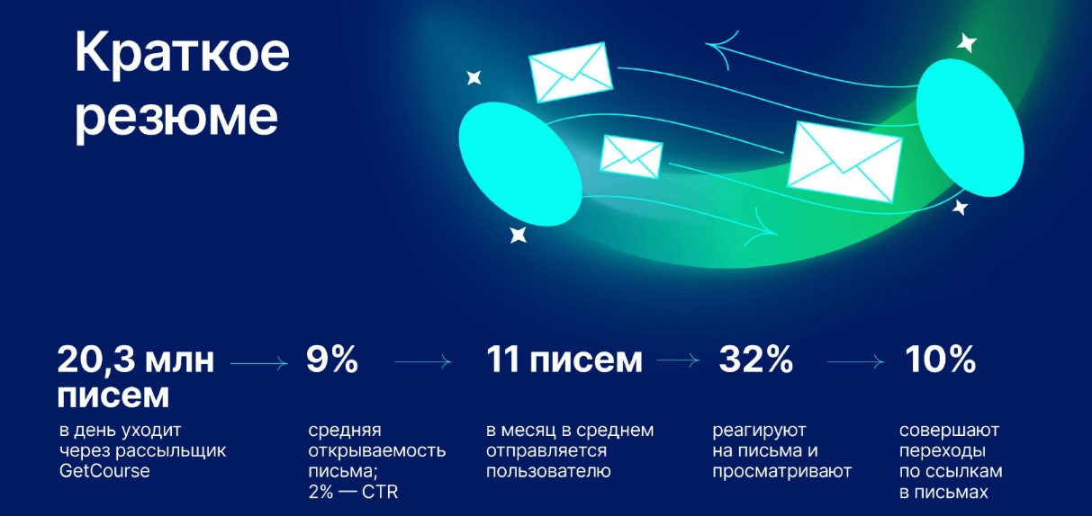 Он приводит очень интересные цифры по различным аспектам, в том числе – по рассылкам.